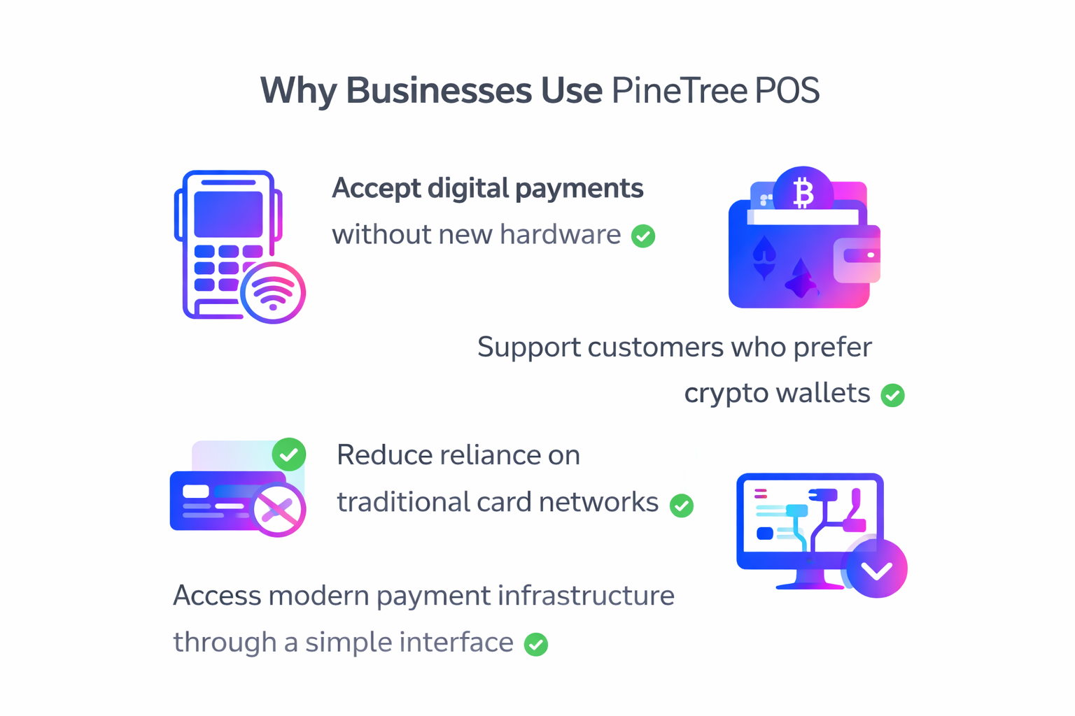 Whether you’re operating a retail store, restaurant, or service business, PineTree brings modern payment infrastructure to your checkout counter without the hassle for more equipment.